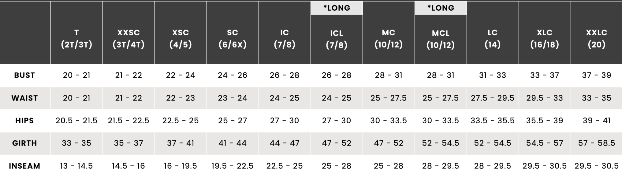 Uniform Store Uniform Store Clear Filters Filter Clear Filter Mini Movers Leotard Dress $30.00 XXSC XSC SC MC LC XLC Add To Cart Added! Movement Foundations Leotard Dress $30.00 XXSC XSC SC MC LC XLC Add To Cart Added! Ballet/Jazz Combo Leotard Dress (Ages 3-4) $30.00 XXSC XSC SC MC LC XLC Add To Cart Added! Kindergarden Leotard $30.00 XSC SC MC LC XLC XSA SA MA LA XLA Add To Cart Added! Level 1 Leotard $30.00 XSC SC MC LC XLC XSA SA MA LA XLA Add To Cart Added! Level 2 Leotard $30.00 XSC SC MC LC XLC XSA SA MA LA XLA Add To Cart Added! Level 3 Leotard $30.00 XSC SC MC LC XLC XSA SA MA LA XLA Add To Cart Added! Boys White V Neck Shirt $30.00 XSC SC MC LC XLC XSA SA MA LA XLA Add To Cart Added! Boys Black Leggings $20.00 XSC SC MC LC XLC XSA SA MA LA XLA Add To Cart Added! Adult Ballet Tights $10.00 SA MA LA XLA XXLA Add To Cart Added! Child Ballet Tights $10.00 XSC SC MC LC XLC Add To Cart Added! Child Canvas Ballet Shoes $30.00 1 1.5 2 2.5 3 3.5 4 4.5 5 5.5 6 6.5 7 7.5 8 8.5 9 9.5 10 10.5 11 11.5 12 12.5 13 Add To Cart Added! Adult Split Sole Canvas Ballet Shoes $30.00 5 6 7 8 9 10 11 12 Add To Cart Added! Child Slip-On Jazz Shoes (Hazelnut) $30.00 12 12.5 13 13.5 1 1.5 2 2.5 3 Add To Cart Added! Child Slip-On Jazz Shoes (Caramel) $30.00 12 12.5 13 13.5 1 1.5 2 2.5 3 Add To Cart Added! Adult Slip-On Jazz Shoes (Hazelnut) $30.00 3.5 4 4.5 5 5.5 6 6.5 7 7.5 8 8.5 9 9.5 10 10.5 11 Add To Cart Added! Adult Slip-On Jazz Shoes (Caramel) $30.00 3.5 4 4.5 5 5.5 6 6.5 7 7.5 8 8.5 9 9.5 10 10.5 11 Add To Cart Added! Black Cargo Pants $45.00 IC MC LC XSA SA MA LA XLA Add To Cart Added! Black Jazz Pants $30.00 XSC SC MC LC XLC XSA SA MA LA XLA Add To Cart Added! No results found No results match your search. Try removing a few filters. Leotard Sizing Chart